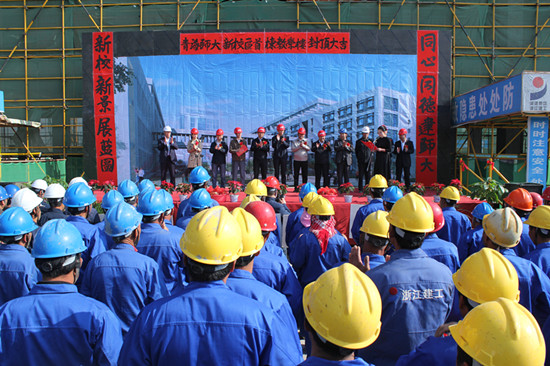 永利官网举行新校区教学服务用房项目首栋教学楼封顶仪式
