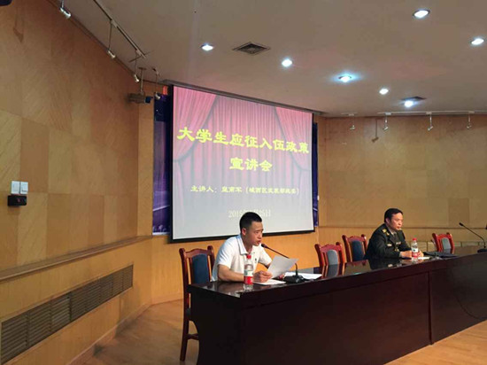 6月25日下午,永利官网在田家炳学术报告厅召开大学生应征入伍政策宣讲会,西宁市城西区人民武装部政委皇甫军作征兵政策宣讲。永利官网各院系师生代表200余人参加了宣讲会。宣讲会由学工处副处长王彦芳主持。 会上,皇...26 2015-06