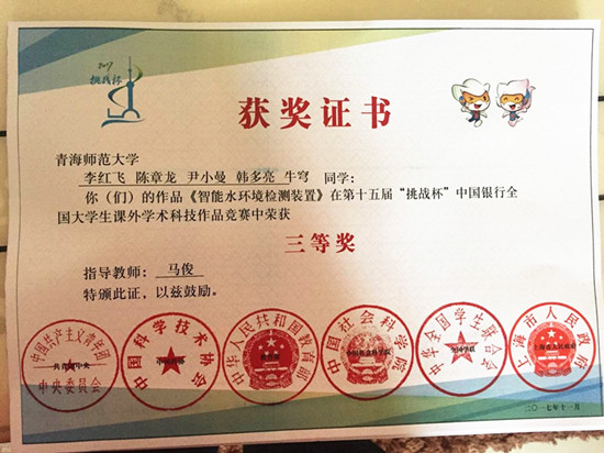 永利官网两个项目在 “挑战杯”全国大学生 课外学术科技作品竞赛中获奖