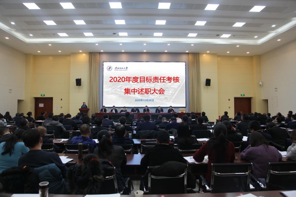 12月29日,学校召开2020年度目标责任述职大会。全体校领导、处级干部和教职工代表共计160余人参加会议。会议由校党委副书记、常务副校长马德明主持,校党委书记毛学荣作总结讲话。为客观公正评价领导班子和处级干...29 2020-12 -