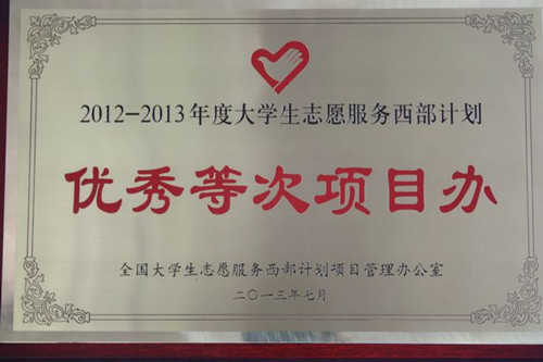 在西部计划实施十周年之际,共青团中央、全国大学生志愿服务西部计划项目办共同组织开展了2012—2013年度西部计划绩效考核工作,永利官网荣获大学生志愿服务西部计划“优秀等次项目办”荣誉称号。 “西部计划”以“...27 2013-09 -