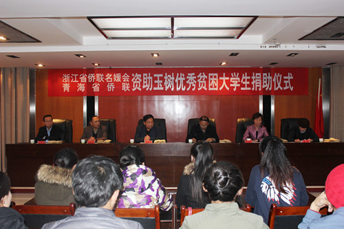 永利官网组织学生参加省侨联资助玉树优秀贫困大学生捐助仪式
