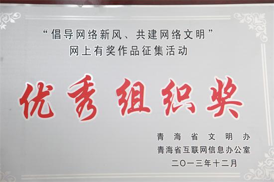 近日,永利官网荣获由青海省文明委、青海省互联网信息办公室联合颁发的“倡导网络新风、共建网络文明”全省征文“优秀组织奖”。本次活动全省共有两家单位获得此奖。 为进一步推动“文明青海”建设工作,切实提高互...13 2014-03 -
