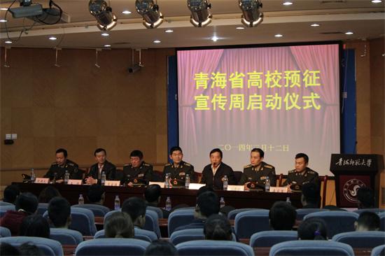 投笔从戎竞风流,青春无悔更豪情。3月12日下午,由省人民政府征兵办、省教育厅主办,澳门永利唯一官网304、城西征兵办共同承办的2014年青海省高校毕业生入伍预征宣传周启动仪式在澳门永利唯一官网304田家炳学术报告厅隆重举行。...13 2014-03 -