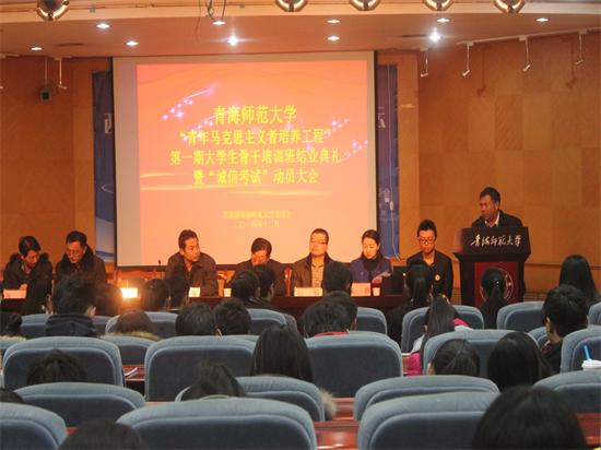 彰显榜样力量,引领青年成长。2014年12月31日下午,永利官网第一期“青年马克思主义者培养工程”大学生骨干培训班结业典礼暨“诚信考试”动员大会在田家炳书院学术报告厅举行。校党委副书记马德明,团省委学校部副部...04 2015-01 -