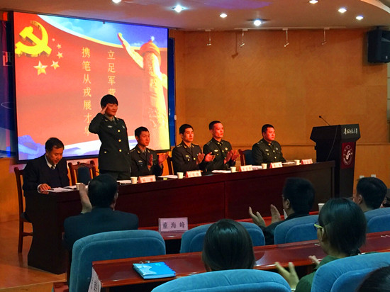优秀大学生官兵代表来永利官网作参军入伍宣讲报告