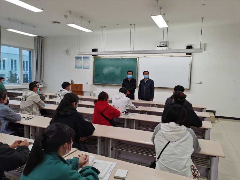 4月23日,省教育厅副厅长杨发玉莅临永利官网城北校区检查指导学生返校工作,实地走访相关学院指导主题班会和“开学第一课”的开展情况,并对认真做好学生返校后的服务管理工作提出要求。副校长许存宁和相关职能部门负责人陪同检查。