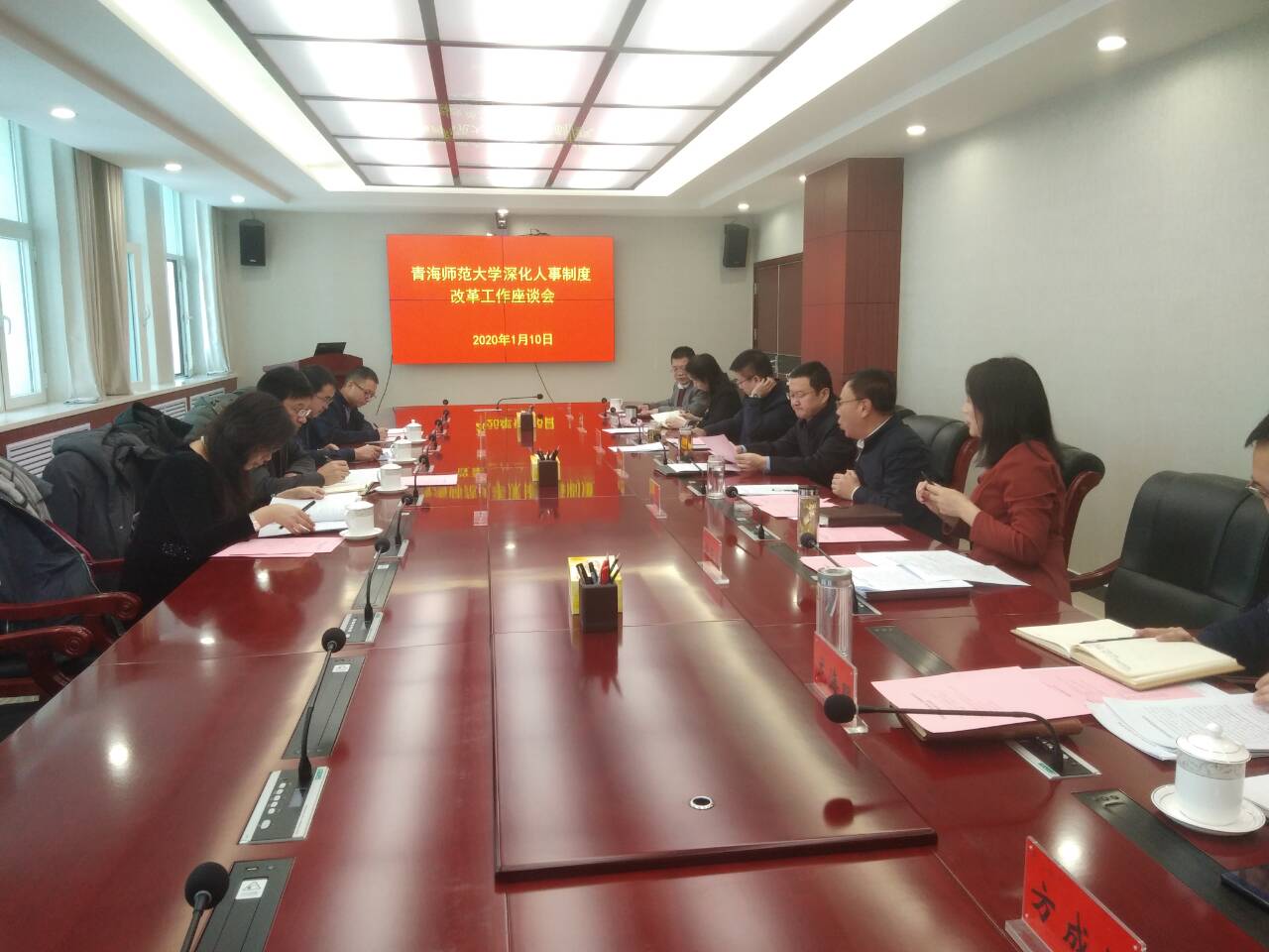 为扎实推进人才兴校战略,落实“建设教师教育和民族教育特色鲜明的综合性师范大学”发展目标,1月10日上午,永利官网召开深化人事制度改革座谈会,会议邀请了省教育厅高等教育处、省人社厅专业技术人员管理处、事业管理处和省机构编制委员会办公室三处等相关负责人莅临座谈会。校党委书记毛学荣,校党委副书记、常务副校长马德明,校党委副书记梅岩,党办(校办)、组织部(人事处、统战部、机关党委)负责人及相关工作人员参加了本次座谈会。会议由马德明主持。