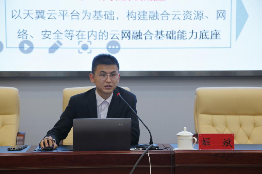 随后,中国电信集团天翼云科技有限公司西北中心云业务高级支撑工程师姬斌和刘海生分别作了《中国电信5G+云物网教育全场景简介》《天翼云在高校信息化建设的探索与实践》主题报告,对永利官网推进教育现代化,大力推进智慧校园和智慧课堂建设作了技术指导。