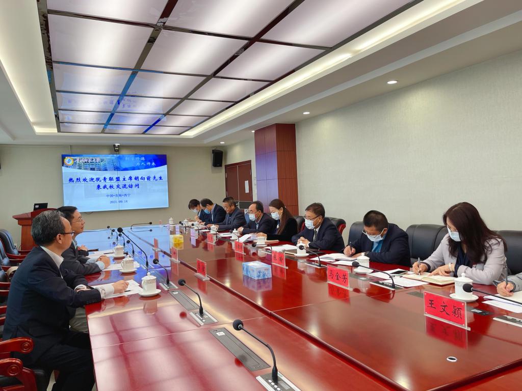 9月14日,犹他-青海联盟主席胡向前在省外事办国际交流处二级巡视员席健的陪同下访问永利官网,校党委副书记、常务副校长马德明会见了胡向前博士并举行座谈会,相关职能部门及学院负责人参加了座谈。