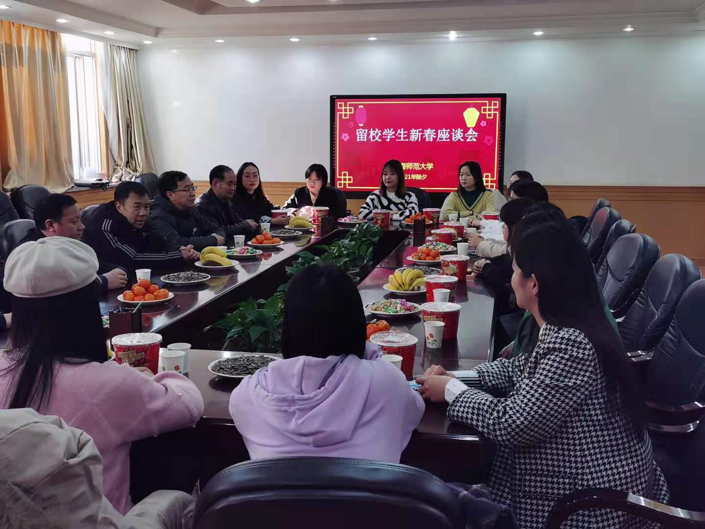 许存宁在座谈会上祝福大家新春快乐、万事如意、家庭幸福、学业进步。同时叮嘱大家加强运动锻炼,做好健康检测和科学防护,严格遵守校园疫情防控各项管理规定,注意安全。提醒同学们春节期间多与父母联系,问候父母和家人,及时沟通在校学习生活情况,让父母安心。