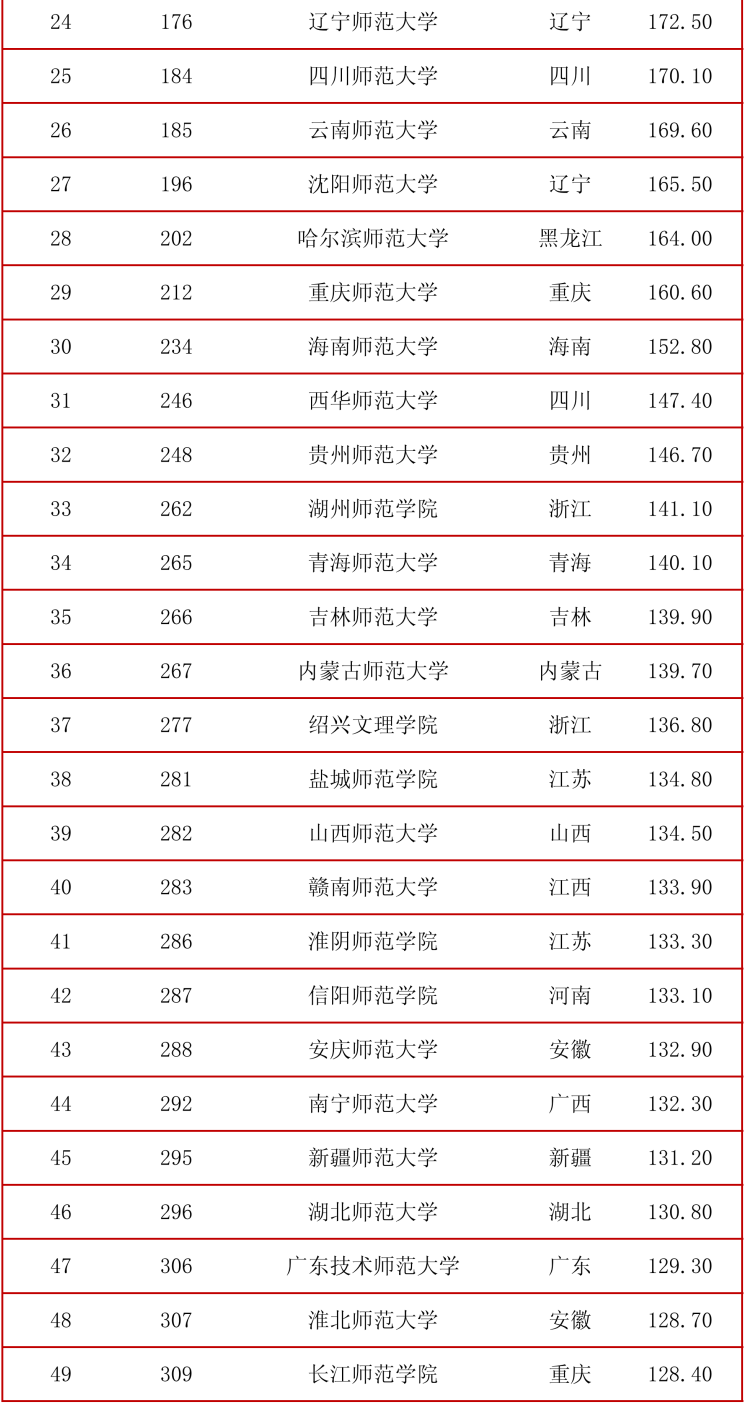 4月26日,高等教育评价专业机构软科正式发布“2021软科中国大学排名”。根据主榜,2021软科中国师范类大学排名中上榜高校有159所,