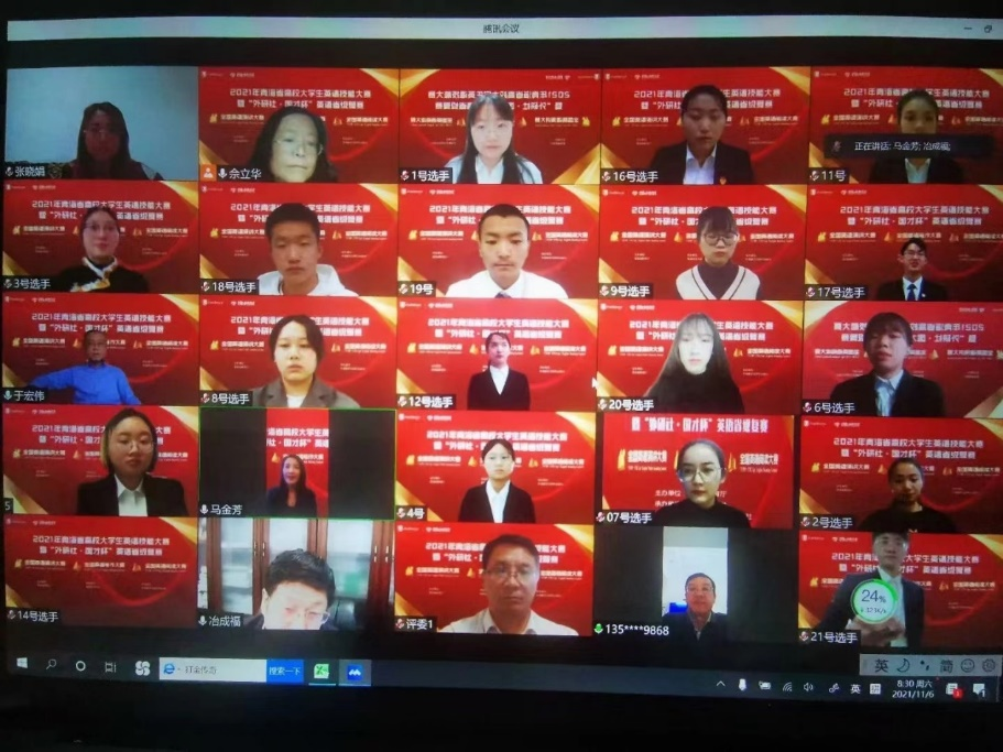 11月6日,由青海省教育厅主办、澳门永利唯一官网304承办的2021年青海省高校大学生英语技能大赛暨“外研社·国才杯”英语省级复赛顺利拉开了帷幕。2021年青海省高校大学生英语技能大赛包括英语演讲、写作、阅读三项赛事,是大学生呈现风采、实现自我的广阔舞台,竞赛以培养具有国际视野、创新意识、家国情怀的国际化人才为目标,引导大学生坚定文化自信、提升综合素养,推动话语表达与时代精神同向同进。