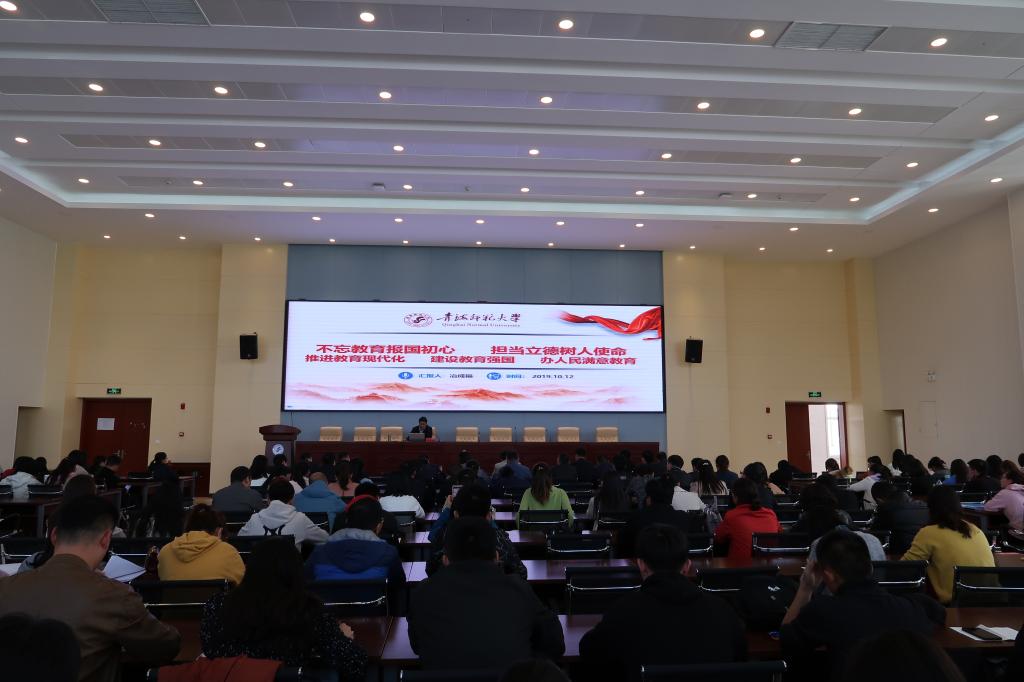 结合全国教育大会精神,冶成福深入阐释了习近平新时代中国特色社会主义教育重要论述。对新时代党的教育方针、政策,教育发展“五大问题”“八个明确”“九个坚持”等内容作了详细讲解;围绕新时代高等教育发展面临的新形势,对新时代教师的内涵,新时代中国特色师范教育体系的内涵以及新时代中国特色师范教育特质等方面进行深入讲解。