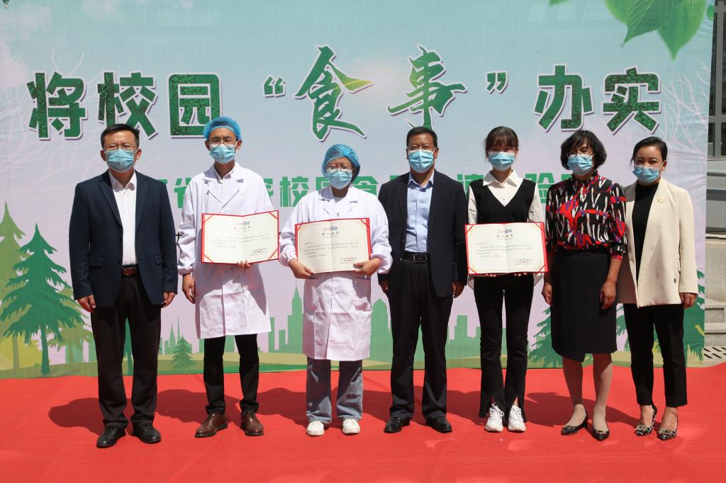 与会领导向海荣、闫素琴、王征征等食品快速检测员颁发了食品检测员培训结业证书;检测员海荣、学生义务监督员马世玉分别作了本岗位服务承诺。最后领导和来宾为食品快速检测室剪彩。