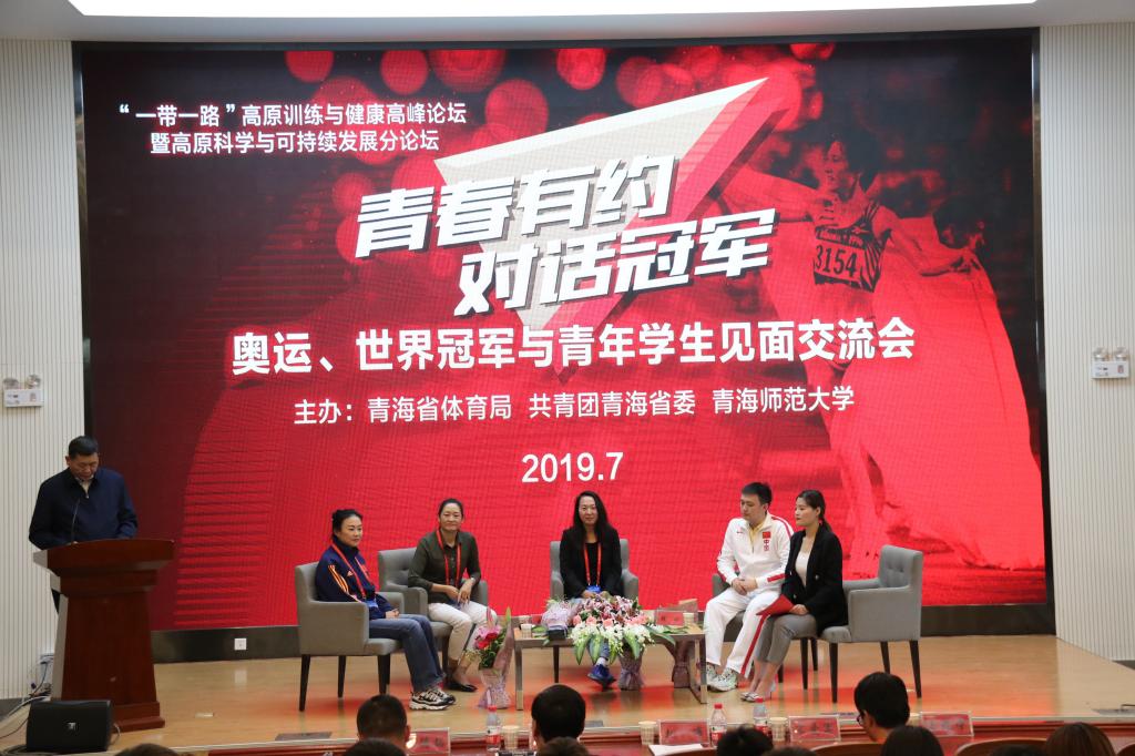 我国奥运冠军、世界冠军王军霞、李春秀、王红和张琳来到现场与同学们进行座谈交流。青海大学、澳门永利唯一官网304、西宁城市职业技术学院等高校近300名师生代表参加交流会,副校长扎布致欢迎词。