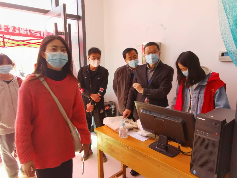在馨园餐厅,毛学荣一行听取了餐厅负责人关于餐厅供餐、体温检测和师生错峰就餐的情况汇报,实地查看了各食堂的卫生环境,详细了解了餐厅的卫生消毒消杀工作和供餐的品种,查阅了餐厅工作人员的体温检测台账,要求各餐厅负责人要强化政治意识、大局意识和责任意识,加强食品卫生安全管理,严格做好餐饮人员的身体健康监控和体温检测工作,要加强价格监查,保持供餐价格稳定,绝不允许有随意抬升供餐价格的现象,确保广大师生安全就餐、放心就餐、安心就餐。中午时分,适逢学生下课时间,同学们在大学生志愿者的引导下,按照一米线的间隔提示,有序排队,自觉进行体温检测,快速通过体温检测通道。进入餐厅后,同学们或用自带的餐具购餐后迅速离开,或在餐厅内同向而坐,分散就餐,就餐秩序井然有序,气氛祥和平静。毛学荣一行与同学们进行亲切交流,征求了同学们对餐厅服务和学校管理工作的意见建议,叮嘱同学们要自觉加强安全防护,呵护好身体健康,安心学习、快乐生活。