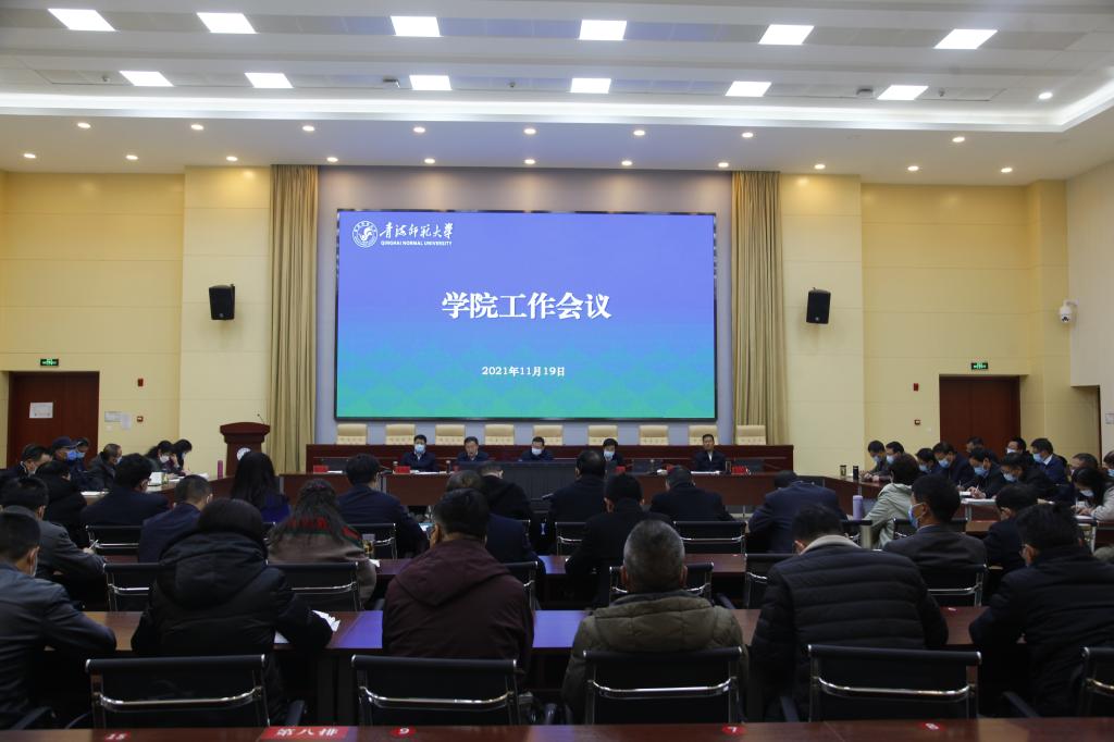 为全面提升学院管理能力和服务水平,推动党史学习教育走深走实,进一步加强学院建设,11月19日,永利官网召开学院工作会议。校领导毛学荣、赵海兴、许存宁、秦燕鸣、冶成福、董占明、曹广超出席会议,各学院及党校办、组织部、人事处、宣传部、教务处、学生工作处、科技处、社科处、研究生院、督导室等单位负责人参加会议。会议由校党委副书记许存宁主持。
