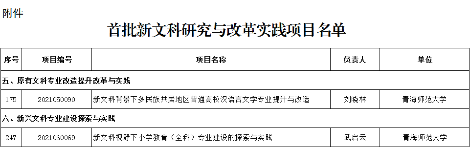 近日,教育部公布了首批新文科研究与改革实践项目,永利官网刘晓林教授主持的“新文科背景下多民族共居地区普通高校汉语言文学专业提升与改造”和武启云教授主持的“新文科视野下小学教育(全科)专业建设的探索与实践”2个项目分别入选“原有文科专业改造提升改革与实践”大类和“新兴文科专业建设探索与实践”大类。