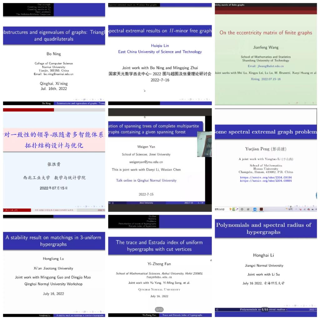 7月15日至17日,由国家天元数学西北中心主办,永利官网数学与统计学院承办的“2022图与超图及张量理论研讨会”在线上成功举办。来自湖南大学、南开大学、厦门大学、上海交通大学、兰州大学、福州大学、安徽大学、上海大学、西北工业大学等高校的30余位专家学者参加了本次研讨会。