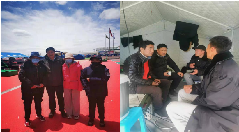 26日中午,冶成福一行到达玛多县后,立即赶往玛多县民族寄宿制中学看望在校支教的4位同学,深入实习学生居住帐篷实地查看了学生震后生活条件,详细询问和了解学生们震后的生活情况和心理状态,并就实习学生安全保障问题与玛多县领导、学校校长进行了深入交流