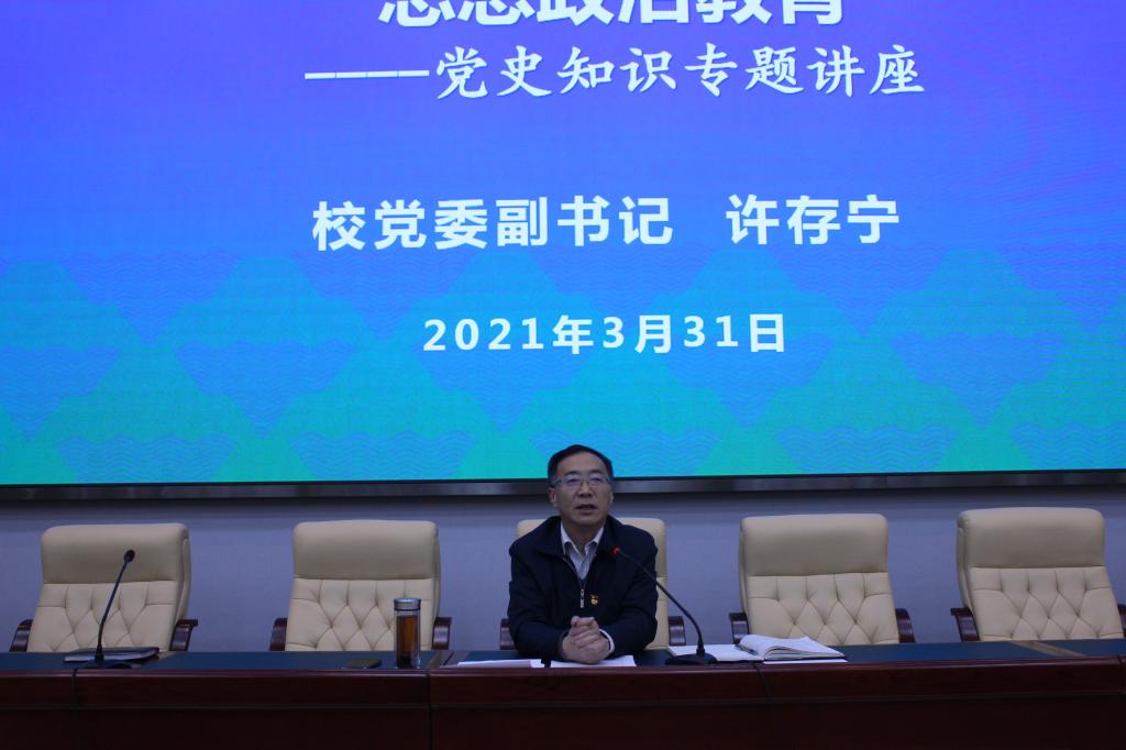 会上,许存宁作了“回顾党的思想政治教育历史,履行辅导员职责使命,做好青年学生的知心人、热心人、引路人”为主题的专题党课。他从党的思想政治教育历史、我国高校辅导员制度的发展历程两个方面回顾了辅导员制度的发展历程和不同阶段担任使命职责,结合学校学生工作队伍现状,坚持问题导向,就围绕新时期高校辅导员的职责使命和如何成为一名优秀的辅导员问题进行了分析和阐述。讲课中既有政策理论解读,又有实践案例分享,鼓励学生工作队伍从党史学习教育中汲取智慧和力量,全力以赴做好学生思想政治教育工作。他指出,2021年是中国共产党建党100周年,是“十四五”规划开局之年,学校上下正在深入学习贯彻全国“两会”精神,扎实推进党史学习教育,全体学工人员要以此为契机,深入学习领会习近平总书记在党史学习教育动员大会上的重要讲话精神,抓好大学生理想信念教育,引导广大学生听党话、跟党走,做到学史明理、学史增信、学史崇德、学史力行。