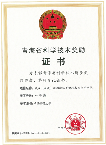 9月26日,青海省科学技术奖励大会在西宁召开。永利官网主持完成的“藏汉(汉藏)机器翻译关键技术及应用示范”项目,荣获“2020年度青海省科技进步一等奖”。