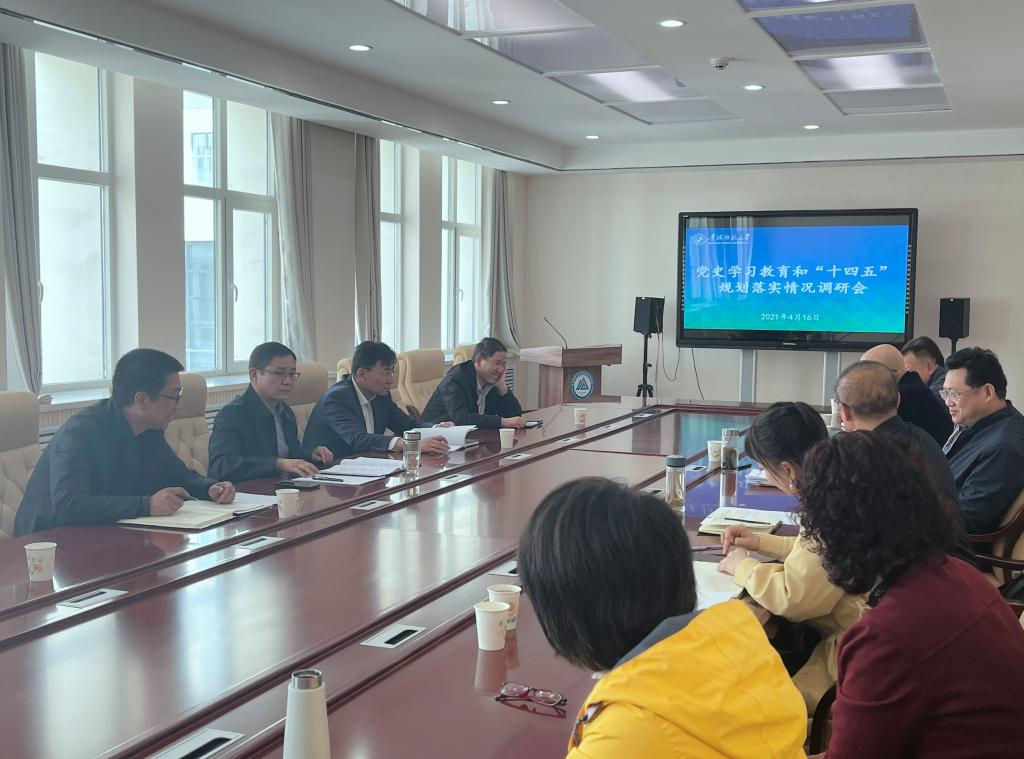 4月16日下午,副校长曹广超一行赴生命科学学院和音乐学院进行就党史学习教育和“十四五”规划落实情况调研,研究生院、保卫处、公共资源管理中心负责人陪同,两学院领导班子、学科负责人参加了调研工作会议。