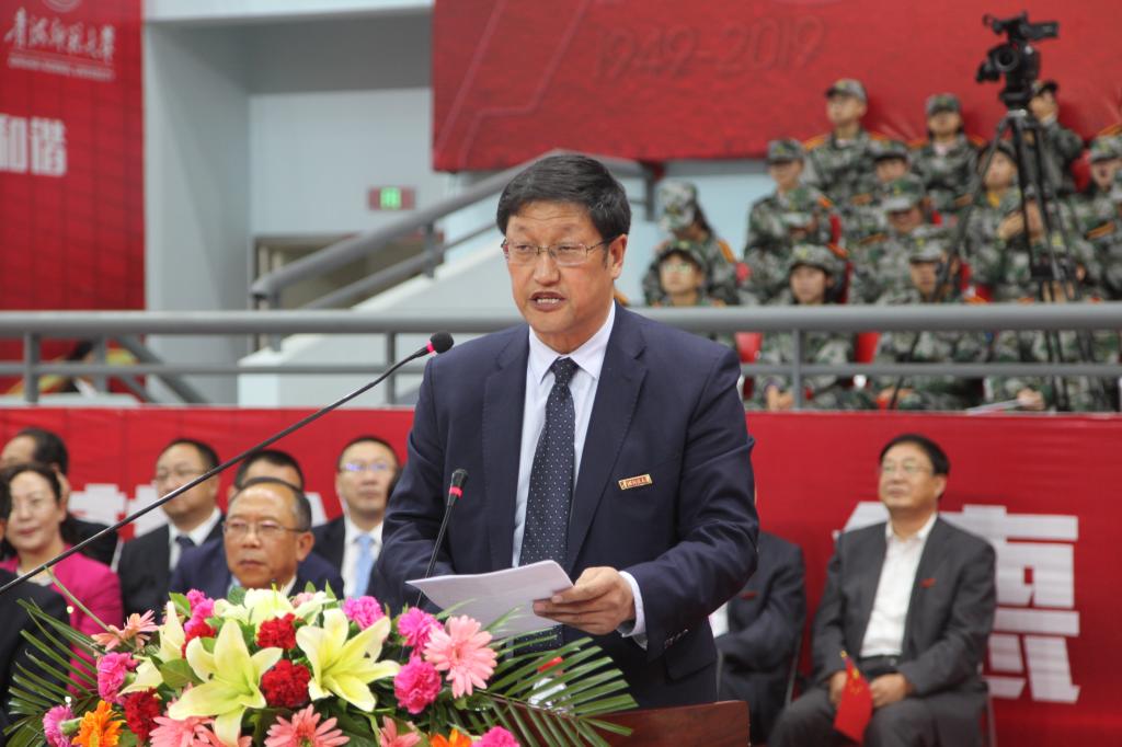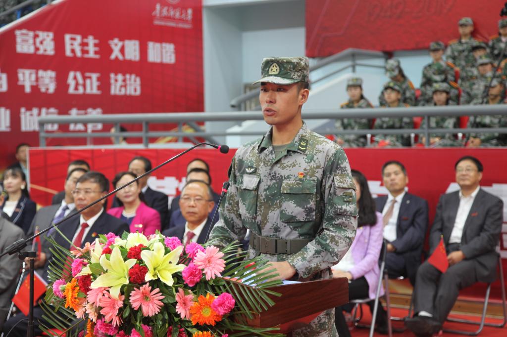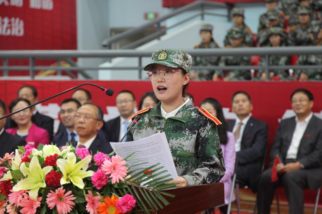 在雄壮有力的国歌声中,2019级新生开学典礼暨军训动员大会拉开帷幕。