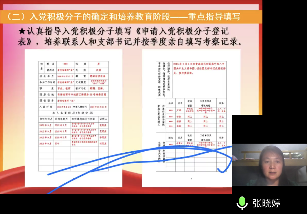 三是紧贴支部工作,突出培训针对性。培训班依托青海干部网络学院组建专题网班,聚焦党支部工作,安排学习了《党支部如何开展谈心谈话活动》《怎样当好党支部组织委员》《发展党员工作常用文书写作》《严格规范党的组织生活 开好党的组织生活会》《中国共产党支部工作条例(试行)》解读等实操性强的实务课程。从具体工作操作入手,邀请长期从事发展党员工作的新闻学院党总支副书记张晓婷同志解读了发展党员规程和违规案例。大家表示,课程设置紧贴需求,学习内容结合实际,达到了解疑释惑、提高工作能力、严格工作程序、推进党支部工作规范化标准化的目的。