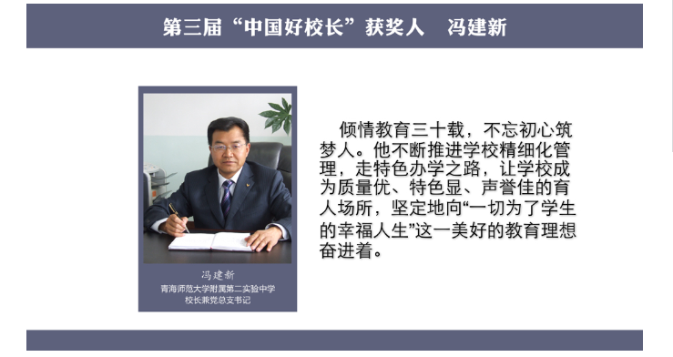 据悉,第三届“寻找中国好校长”大型公益活动历时8个月,吸引了全国29个省市区教育部门与相关人士万余人的关注,近3000人申报了好校长的评选,500余名校长在初选中入围。经网上票选和评审委员会综合评选,冯建新校长脱颖而出,榜上有名,成为了36名获评“中国好校长”中的一员。
