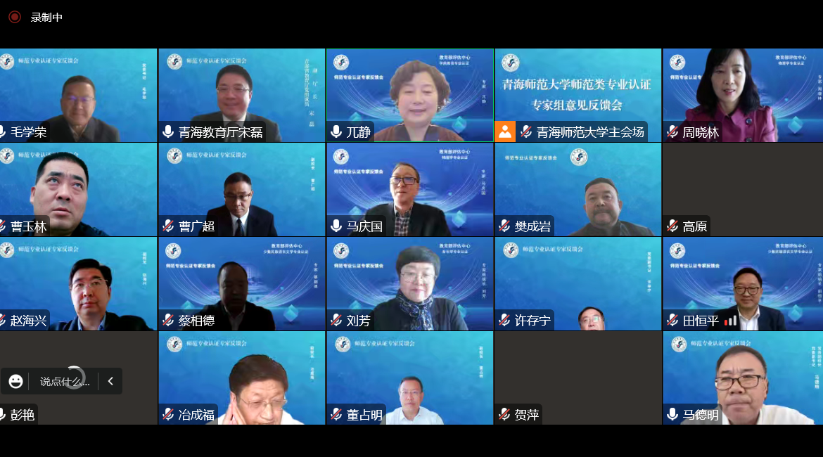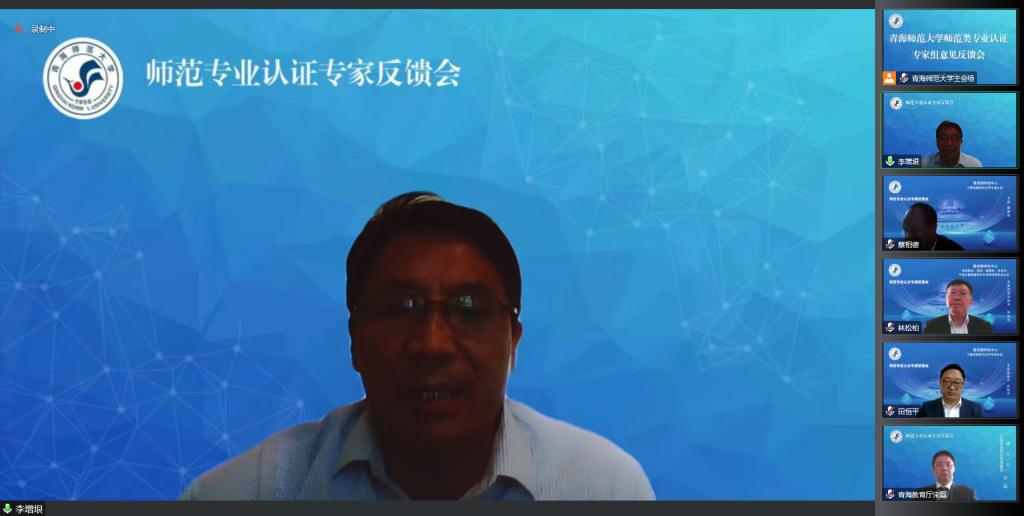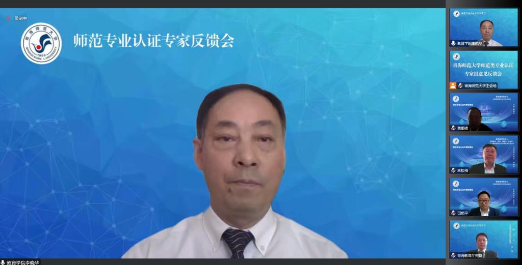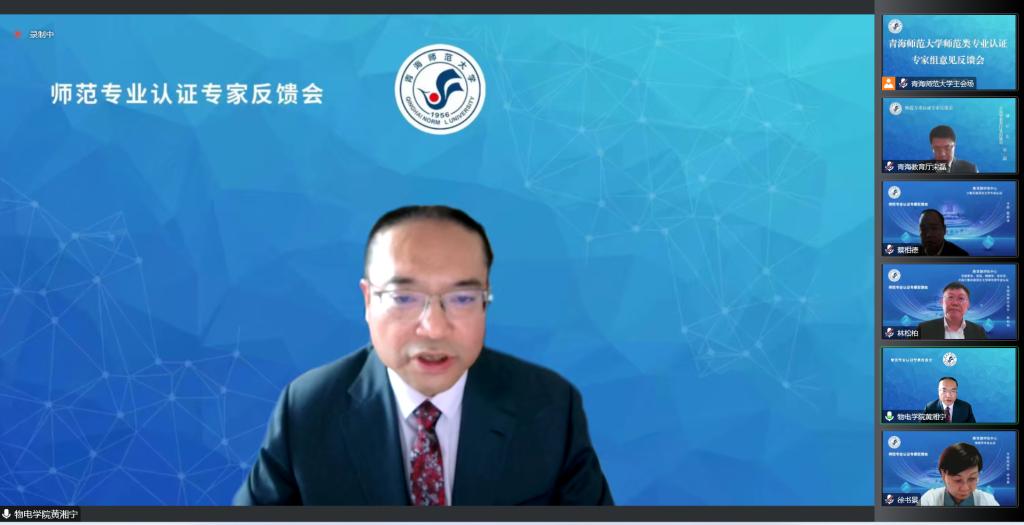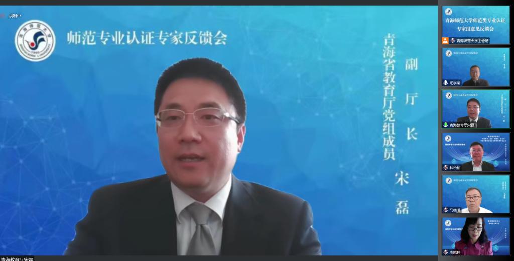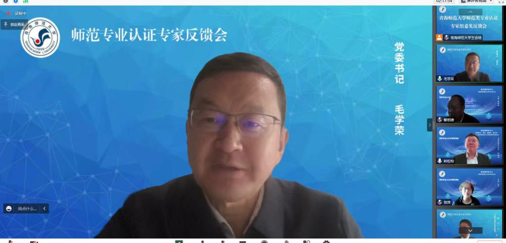 10月22日上午,教育部师范类专业认证专家考查意见反馈会以线上方式举行。专家组全体成员,青海省教育厅副厅长宋磊,澳门永利唯一官网304全体校领导、师范专业认证领导小组全体成员、全校副处级以上领导干部,教学督导、相关学院教研室主任、教务秘书、专业认证联络员,专家联络员,综合协调组、认证办公室、教务处全体工作人员,认证专业教师代表参加会议。会议由联合认证专家组组长齐鲁师范学院林松柏教授主持。