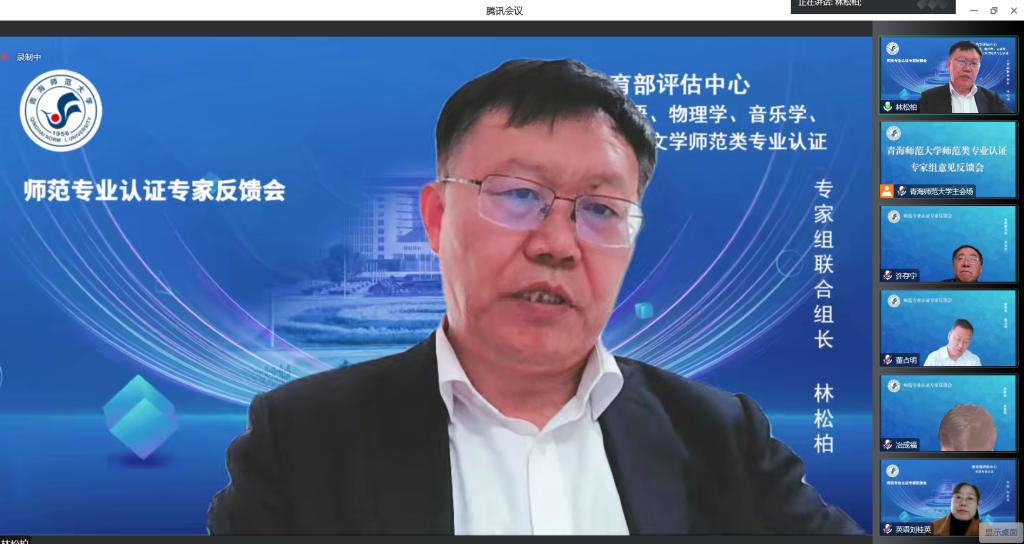会上,林松柏组长首先代表联合认证专家组对线上考查的基本情况进行了介绍,简要概括了澳门永利唯一官网304参与认证的5个师范类专业的特色优势,认为澳门永利唯一官网304学前教育、英语、物理学、音乐学、中国少数民族语言文学5个专业办学优势特色明显,认证工作富有成效。具体表现在:一是深耕师范教育的主责主业,引领高原民族地区基础教育发展;二是坚持师范专业认证理念,创新师范生培养模式,积极探索欠发达、高原、民族地区师范生培养模式,走出了一条师德育人、通识育人、协同育人、实践育人相互融合、共同推进的高质量师范生培养之路;三是认证专业工作扎实,基于认证规范的工作各具特色;四是认证工作准备充分,以评促建、促改成效显著。随后,专家组各成员本着问题导向原则,分别围绕考查指标点逐一作了反馈,提出了中肯意见和改进建议。