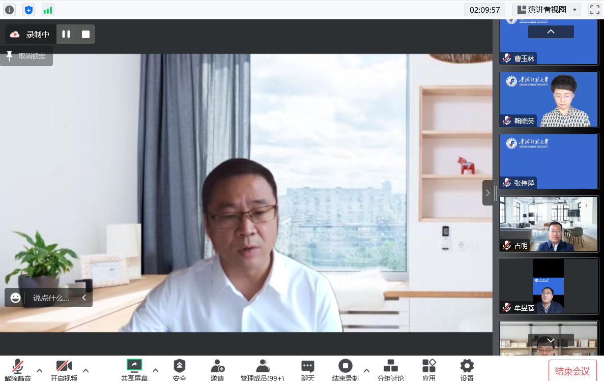 校党委副书记、常务副校长马德明,副校长董占明、曹广超,教育学院党总支书记韩维良,音乐学院党总支书记王永革,物理与电子信息工程学院院长黄湘宁,附属第二实验中学党总支副书记、副校长闫到川等7位中心组成员基于前期对党的二十大精神的学习作了研讨发言,围绕本职工作分享了学习心得、谈了学习感悟。大家纷纷表示,党的二十大描绘了未来发展的宏伟蓝图,鼓舞人心、催人奋进。作为一名教育工作者,要把研究解决教育问题作为学习二十大精神的着眼点、落脚点,扎扎实实静心钻研,在学懂弄通落实上下功夫,把思想变思路,把思路变方法,切实把学习贯彻党的二十大精神体现到推动青海师大教育发展的新思路新举措上。