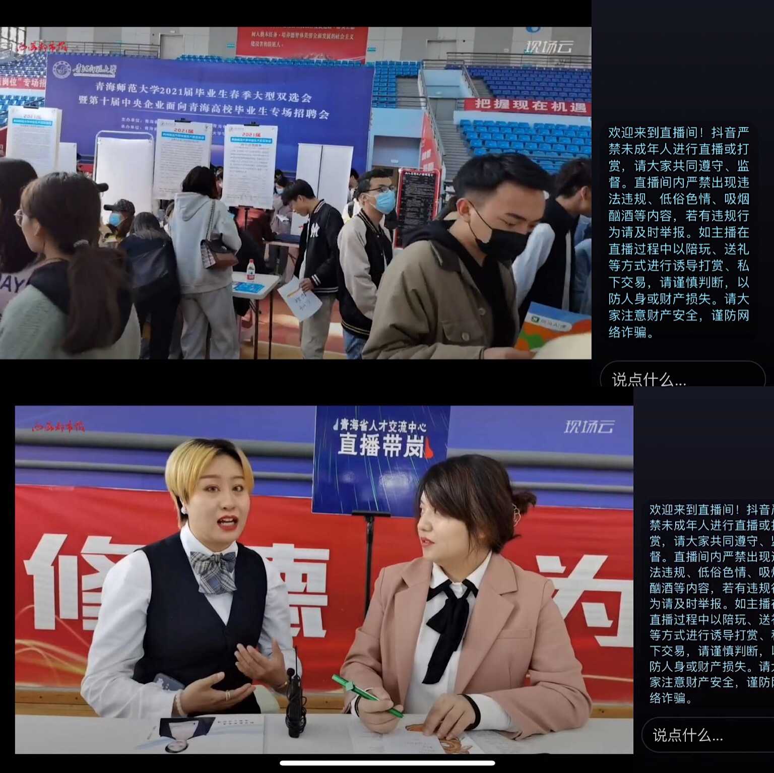 本次双选会采取“线上”+“线下”模式,西海都市报在抖音直播间现场直播双选会盛况,以直播“带岗”的形式,为广大外校求职毕业生与参会企业牵线搭桥,受到了参会单位与毕业生的一致好评。
