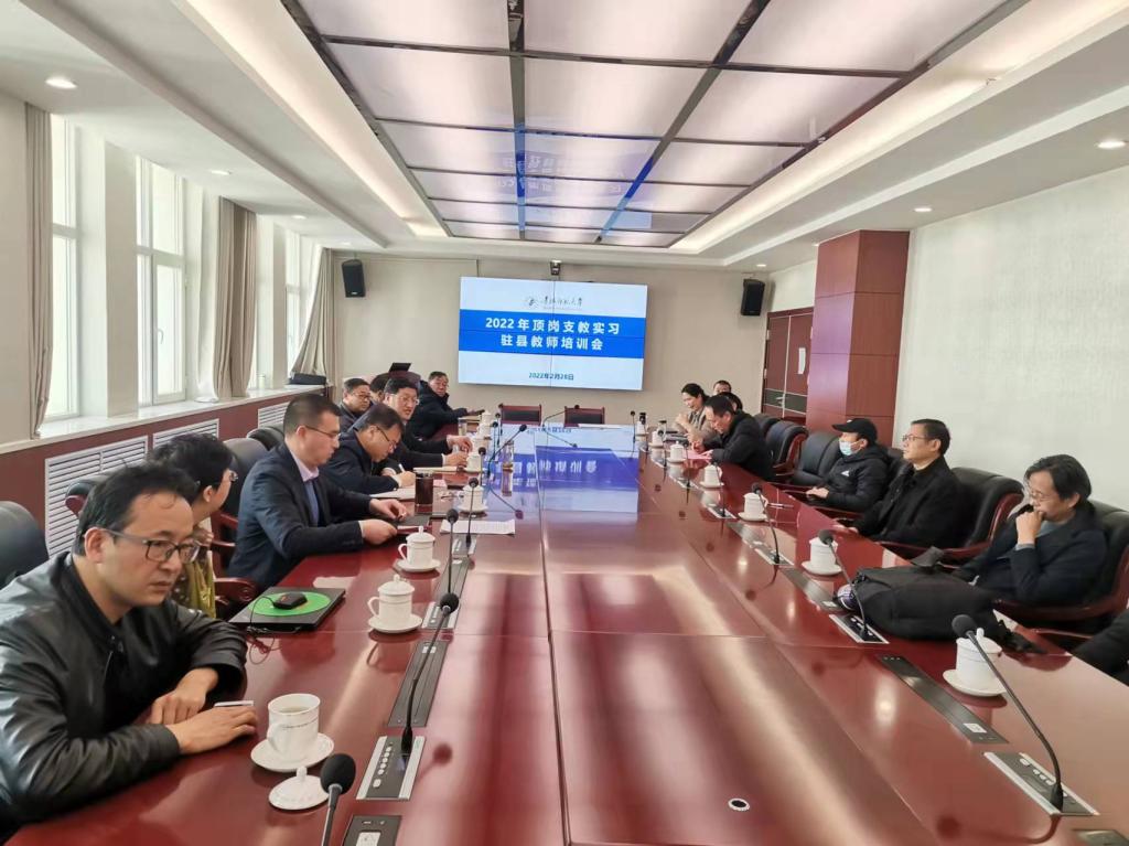 2月28日,永利官网召开2022年顶岗支教实习驻县教师培训会。校党委副书记、常务副校长马德明、顶岗支教实习全体驻县教师,教务处、后勤管理处负责人和相关工作人员等40余人参加了会议。会议由副校长冶成福主持。