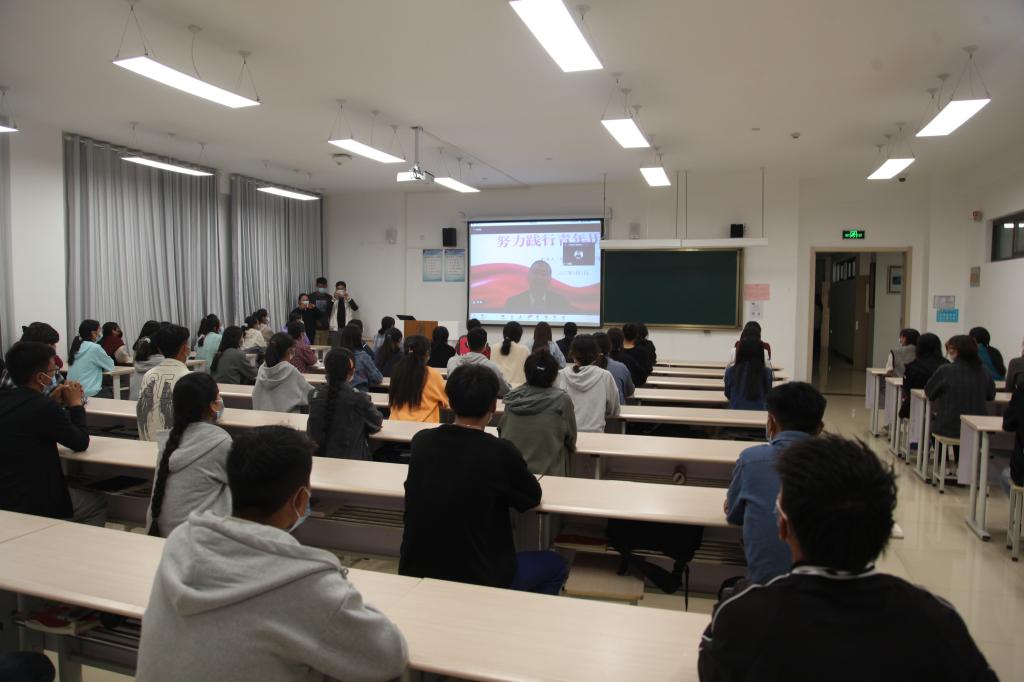 课堂上,毛学荣带领同学们再次重温学习习近平总书记在庆祝中国共产党成立100周年大会上的重要讲话,并从新民主主义革命、社会主义革命和建设、改革开放和社会主义现代化建设、新时代中国特色社会主义四个伟大历史时期,引导同学们简要回顾了中国共产党一百年走过的光辉历程,深刻指出党的历史是最生动、最有说服力的教科书。他用生动鲜活的实例和详实准确的数据,系统讲授了中国共产党为什么能、马克思主义为什么行、中国特色社会主义为什么好等重大问题,进一步引导青年学子深刻领会和把握习近平总书记“七一”重要讲话的重大意义和丰富内涵,增强“四个意识,坚定“四个自信”,做到两个“维护”,在具体实践中践行青年一代的使命担当。
