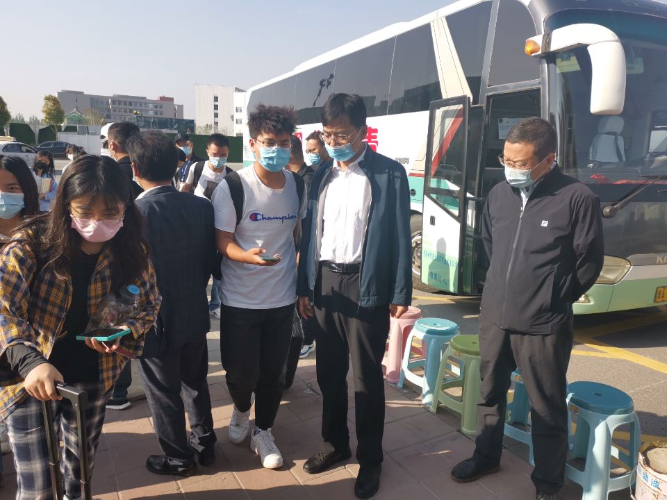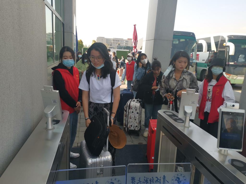 28日,首批返校学生陆续到达指定酒店,报到现场秩序井然,学生工作处工作人员严格审核双码和乘车乘机前48小时核酸检测阴性证明,入住宾馆后对其及时进行了返青后的核酸检测。党委书记毛学荣、副书记许存宁到学生返校工作报到点进行了检查指导并对返校学生进行了慰问。29日上午首批220名同学由学生派车接回学校,在校门口严格按工作程序再次审核完信息后同学们返回宿舍。