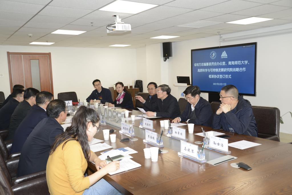 3月17日下午,省地方志编纂委员会办公室、高原科学与可持续发展研究院战略合作协议签订仪式在永利官网城北校区举行。省地方志编纂委员会办公室主任杨松义,校长史培军、副校长赵海兴出席。省地方志编纂委员会办公室综合处、永利官网社会科学处、历史学院相关负责人和教师代表,发展规划处、高科院办公室相关人员参加。