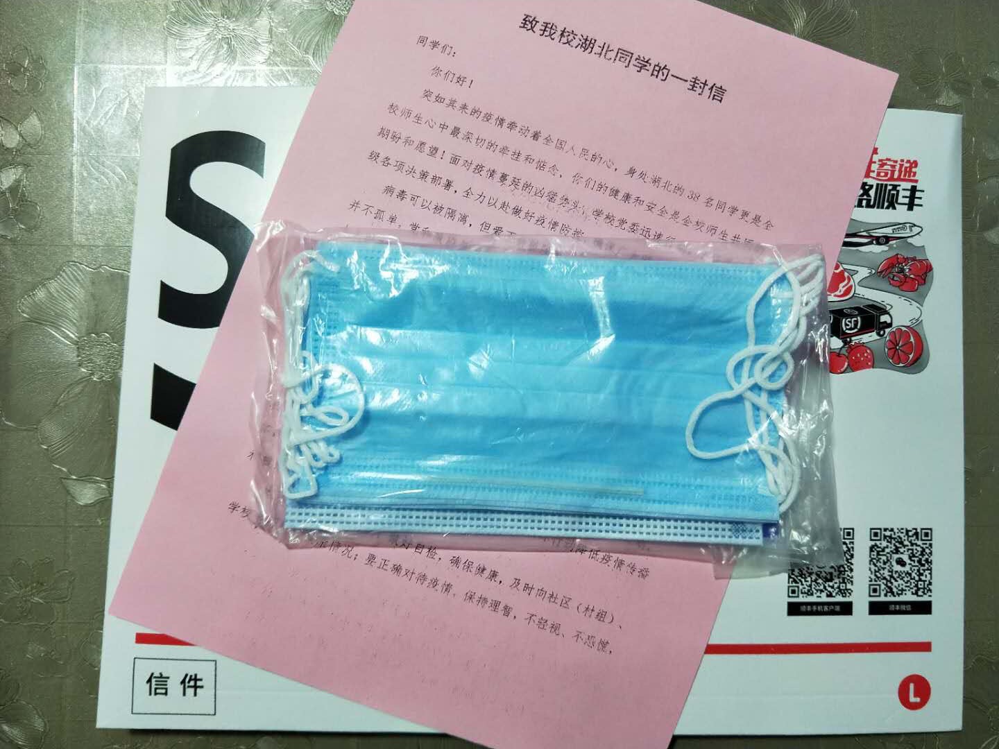 2月22日,一份份装有医用外科口罩和《致永利官网湖北籍同学的一封信》的“爱心快递”经由顺丰快递从学校寄出,寄往了永利官网身处湖北的63名青师学子手中。