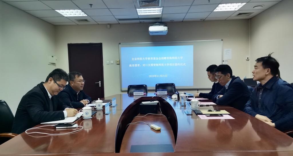 11月21日下午,北京师范大学教育基金会捐赠澳门永利唯一官网304教育援青、对口支援澳门永利唯一官网304项目签约仪式在北京师范大学举行。北京师范大学党委常委、副校长、教育基金会理事长张凯,澳门永利唯一官网304党委副书记、常务副校长马德明及两校相关部门人员出席签字仪式。签字仪式由北京师范大学教育基金会副理事长兼秘书长张吾龙主持。