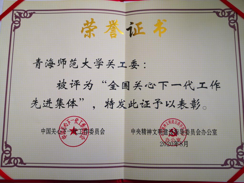 2020年11月17日至18日,纪念中国关心下一代工作委员会成立30周年暨全国关心下一代工作表彰大会在北京召开。会上,全国593个单位、1791名个人受到表彰。我省受到表彰的共10个集体、33名个人。永利官网关工委荣获“全国关心下一代工作先进集体”荣誉称号,为此次全省唯一获奖高校。2021年3月2日,召开了全省关工委工作会议,省关工委领导为永利官网关工委颁发了奖牌和证书。