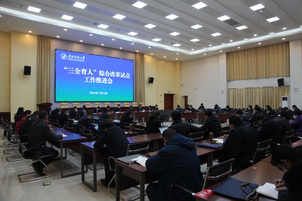11月12日上午,永利官网召开“三全育人”综合改革试点工作推进会,校领导,各职能部门、学院负责人及学院辅导员代表参加会议。校党委副书记、常务副校长马德明主持会议。
