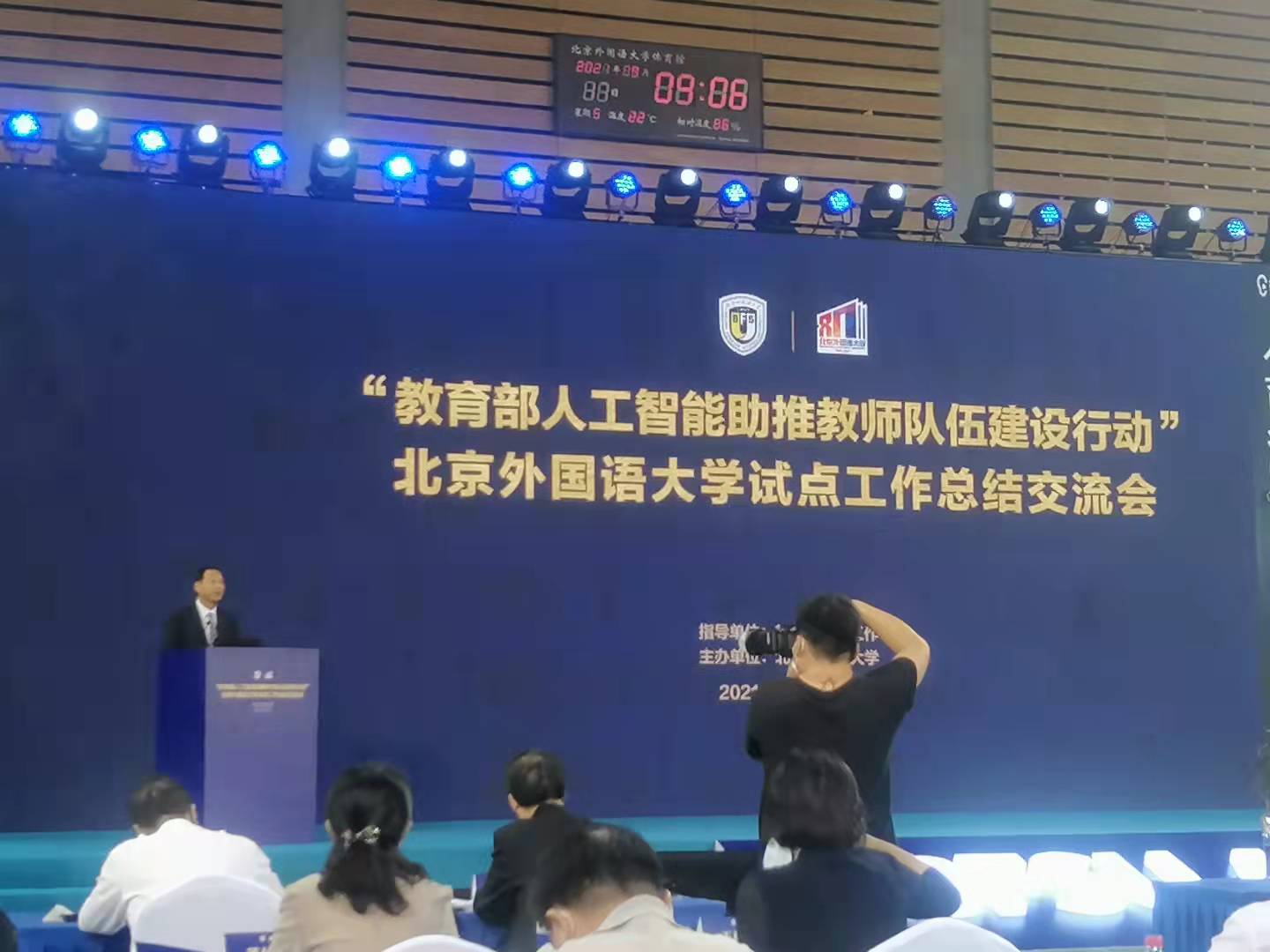 9月17日,“教育部人工智能助推教师队伍建设行动”试点工作总结交流会在北京外国语大学举行,教育部党组成员、副部长孙尧,教育部教师工作司司长任友群、副司长宋磊,北京市委教育工委副书记李奕,教育部试点专家组的专家,全国23个省教育厅的负责人,全国55所第二批人工智能助推教师队伍建设试点申报高校的校领导,教师发展、信息化建设等相关部门的负责人,相关专家等300余人出席了会议。永利官网作为教育部第二批人工智能助推教师队伍建设行动试点单位,由校党委副书记、常务副校长马德明带队,教师发展中心郭辉、王亚夫陪同,应邀参加了会议。