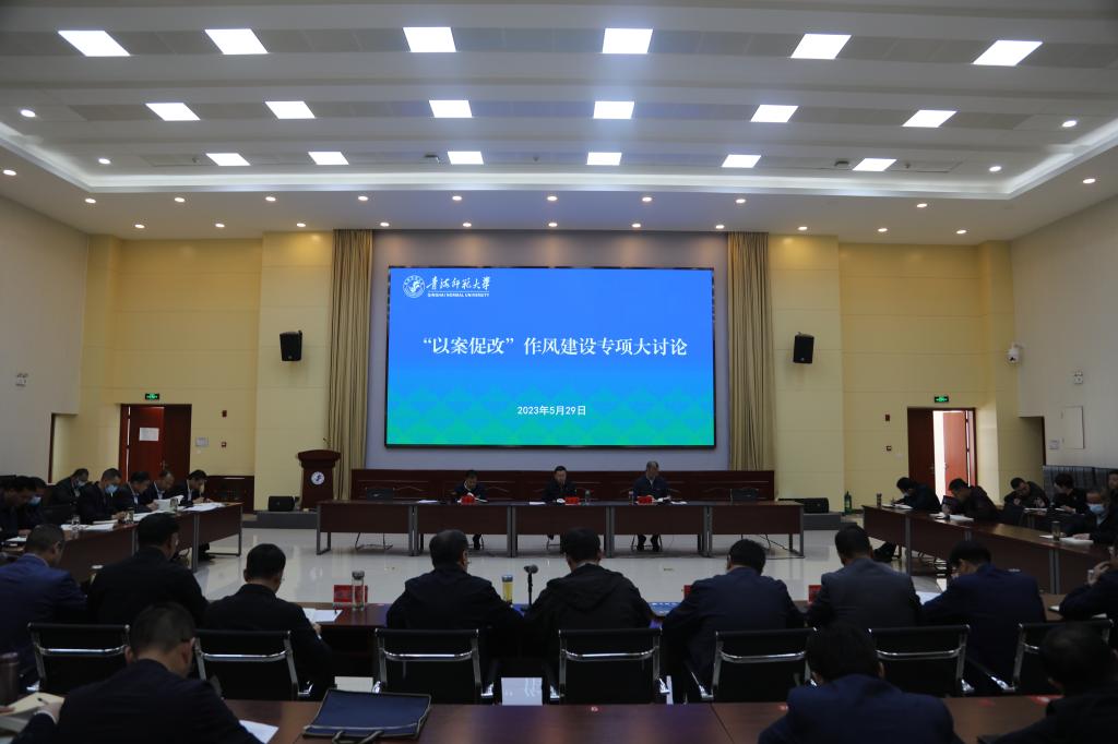 5月29日下午,澳门永利唯一官网304党委举行理论学习中心组学习会,开展“以案促改”作风建设专项大讨论。校党委书记毛学荣主持学习讨论,校党委理论学习中心组成员参加会议。