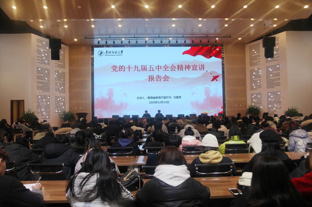 12月14日,十九届五中全会精神宣讲报告会在永利官网举行。报告会邀请十九届五中全会精神省委宣讲团成员、省教育厅副厅长马嘉宾作宣讲报告。学校各学院、各部门领导,师生代表200余人参加报告会,报告会由副校长许存宁主持。