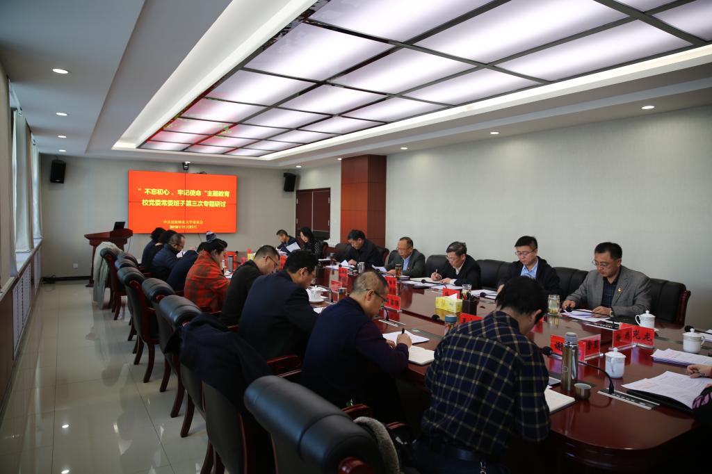 张雄伟在总结讲话时指出,校党委常委班子成员结合各自工作和学习实际,谈了认识和体会,大家的研讨既有理论认识,又有具体实践,对于深入推进主题教育具有积极的推进作用。他要求,一要充分认识全会意义,准确领会精神实质。要紧密结合学校发展实际和各自工作职责,把学校各项制度建设和治理能力建设摆在更加突出的位置,建章立制,构建体系,继续深化体制机制改革,推进学校治理体系和治理能力现代化,力争把主题教育的成效切实转化为推动工作的动力。二要严格遵守党章党规,努力加强自身修养。按照“不忘初心、牢记使命”主题教育常态化的要求,在读原文、悟原理上下足功夫,深刻领会核心要义,进一步提高贯彻落实的自觉性,带头维护党章党规、遵守党章党规、捍卫党章党规,切实发挥“关键少数”的引领示范作用。三要紧密联系工作实际,着力抓好整改落实。按照习近平总书记关于开展主题教育的重大要求,根据省委相关工作部署,瞄准检视出的突出问题进行精准整改、高质量整改,着力解决师生群众最关心、最直接、最现实的问题,着力解决改革发展中的重大关键问题,确保主题教育成效经得起检验。