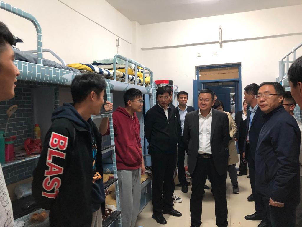 9月21日晚,校党委书记毛学荣深入学生公寓,检查当晚的教师值班情况,慰问了来自全国不同地区的2020级新生。副校长许存宁、冶成福和学生工作处、保卫处负责人员陪同。
