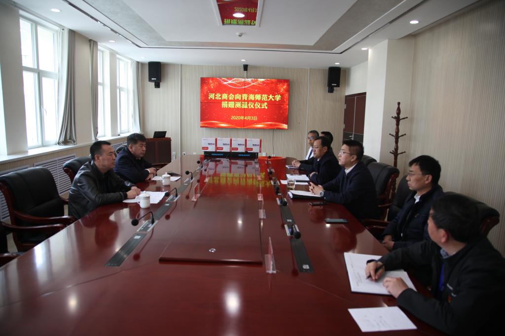 疫情无情,人间有爱。继3月18日,河北商会青海分会向省属高校各捐赠5套热成像体温筛查系统后,4月3日,河北商会青海分会又向永利官网捐赠4套热成像体温检测仪。河北商会青海分会常务副会长周贵谦、副会长孟祥东及校党委副书记梅岩、副校长董占明出席捐赠仪式。仪式由梅岩主持。