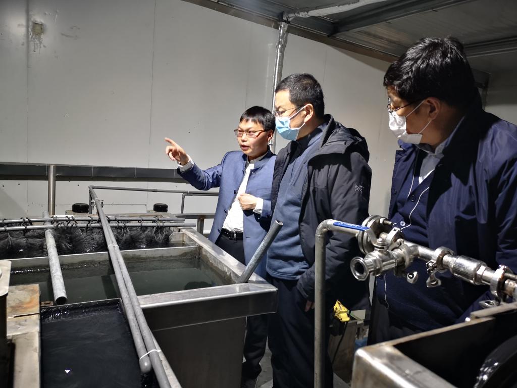 毛学荣一行参观藻类-生物共生体系养殖车间